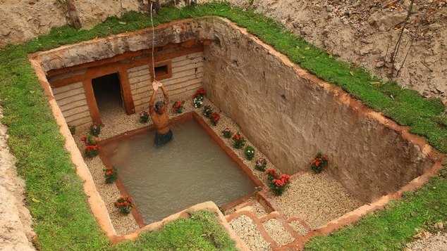 Στο συγκεκριμένο βίντεο, ένας άντρας χτίζει μία υπόγεια πισίνα, από το μηδέν. Τον παρακολουθούμε να σκάβει το χωμάτινο έδαφος με ένα και μόνο εργαλείο, με ένα καλέμι και με τα δυο του χέρια να φτιάχνει σκαλοπάτια, επίπεδα στο χώμα, να δημιουργεί παράθυρο και ένα μικρό δωμάτιο ξεκούρασης, να φυτεύει λουλούδια να βάφει τους τοίχους και τα σκαλοπάτια με διαφορετική απόχρωση χρώματος. Η τερακότα στην πιο πρωτόλεια υφή της.