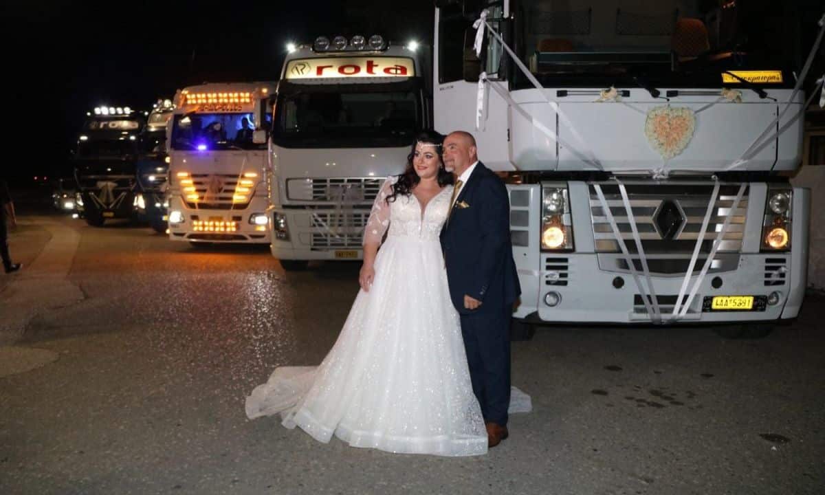 Ένας γάμος ξεχωριστός από τους άλλους τελέστηκε πριν μερικές εβδομάδες στην Αγιά Λάρισας με τα φορτηγά να έχουν τον πρώτο λόγο.