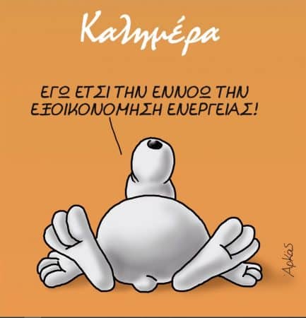 Ο Αρκάς, μας καλημερίζει σήμερα Τρίτη (26/11), με μια χιουμοριστική ανάρτηση που σχολιάζει την εξοικονόμηση ενέργειας με τον δικό του χαρακτηριστικό τρόπο.
