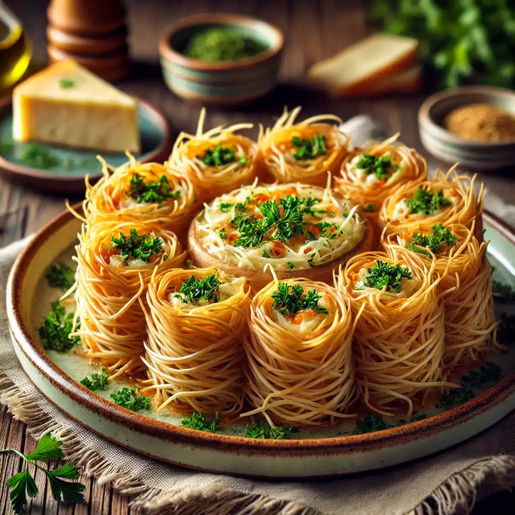 Το αλμυρό κανταΐφι είναι μια εξαιρετική επιλογή για ιδιαίτερες περιστάσεις ή ένα πρωτότυπο καθημερινό πιάτο. Αυτή η συνταγή συνδυάζει την τραγανή υφή του φύλλου κανταϊφιού με μια πλούσια γέμιση από τυριά και αρωματικά, δημιουργώντας μια απολαυστική εμπειρία.