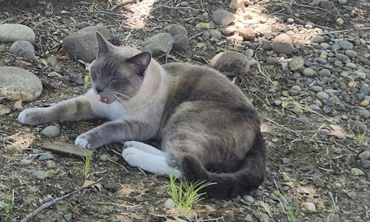 Μια γυναίκα που είδε για πρώτη φορά τον γάτο να περιφέρεται στους δρόμους της πόλης της βόρειας Καλιφόρνια τον τάισε και του έδωσε νερό μέχρι που τον παγίδευσε στις 3 Αυγούστου και τον πήγε στην τοπική SPCA.