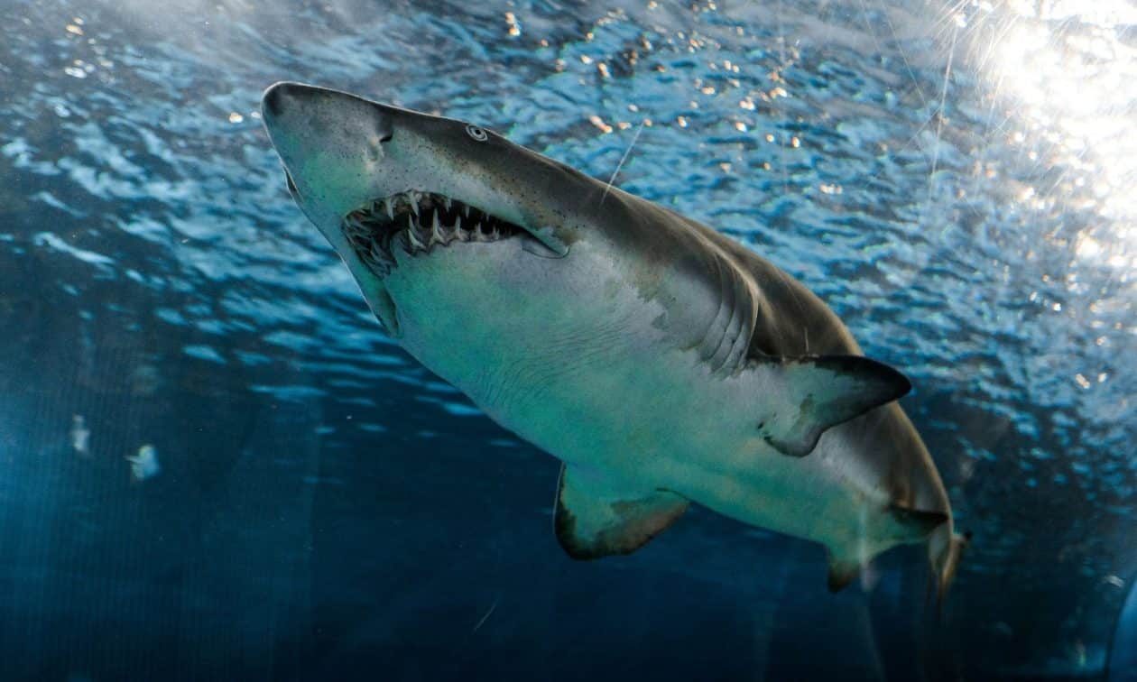 Ξαφνικά εμφανίζεται ο καρχαρίας στο πλάνο και ανοίγει τα σαγόνια του