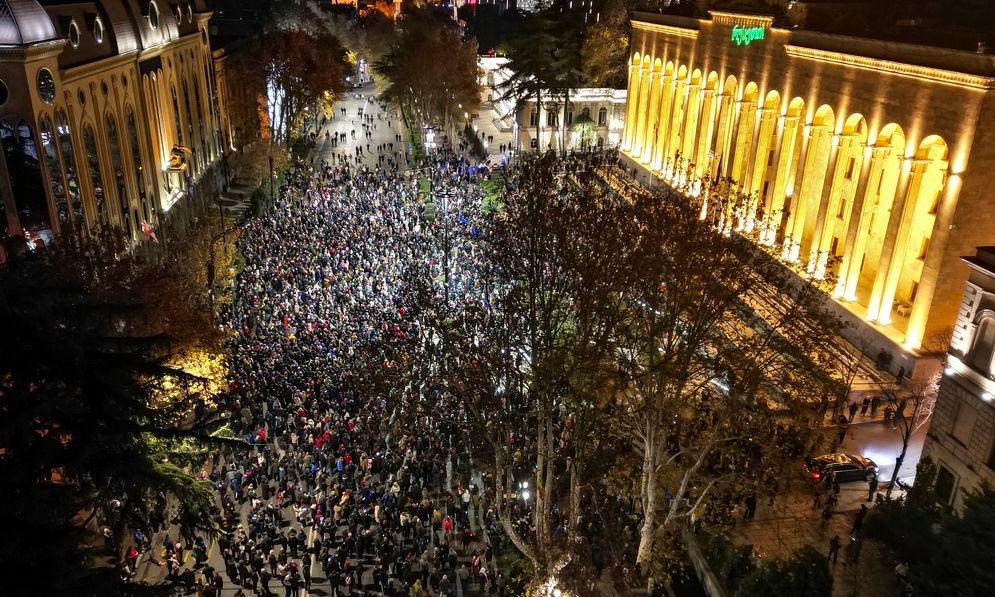 Η αστυνομία της Γεωργίας έκανε χρήση δακρυγόνων και εκτοξευτήρων νερού για να επιχειρήσει να διαλύσει διαδηλωτές, οι οποίοι διαμαρτύρονταν μέχρι τις πρώτες πρωινές ώρες εναντίον της απόφασης της κυβέρνησης να καθυστερήσει μέχρι το 2028 τις διαπραγματεύσεις για την ένταξη της χώρας στην Ευρωπαϊκή Ένωση.
