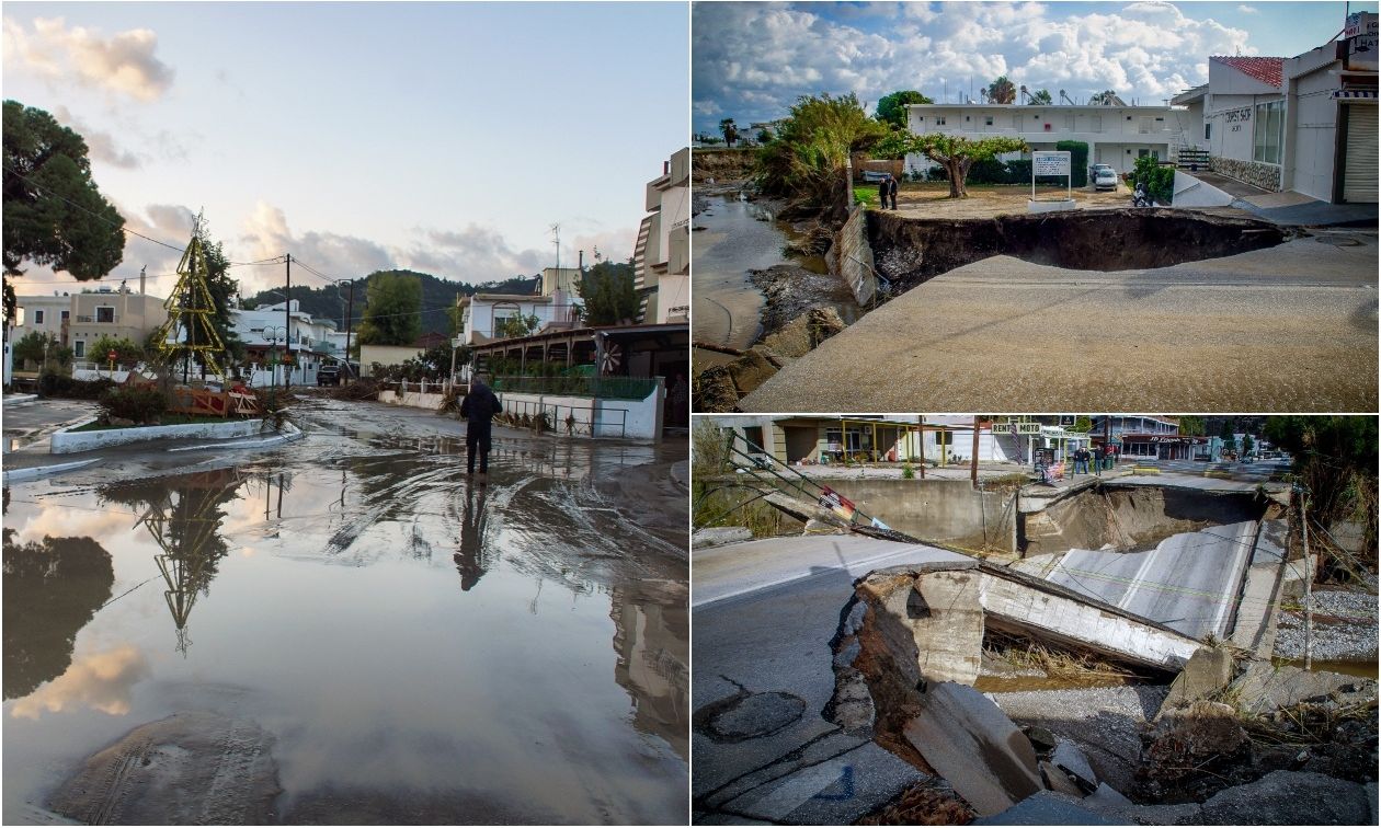 Δραματική ήταν η νύχτα στη Ρόδο. Η κακοκαιρία έπληξε το νησί, μετατρέποντας τους δρόμους σε ορμητικούς χειμάρρους που παράσερναν τα πάντα στον διάβα τους. Το πρωί βρήκε τους κατοίκους του νησιού σε απόγνωση. Η Ιαλυσός μοιάζει με «βομβαρδισμένο» τοπίο. Αυτοκίνητα το ένα πάνω στο άλλο, παρασυρμένα στις γωνιές του δρόμου, όπου παρασύρθηκαν από τα νερά.