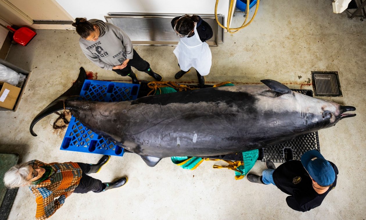 Μεταξύ των επιστημόνων που συγκεντρώθηκαν τη Δευτέρα ήταν και μερικοί που είχαν ταξιδέψει από το εξωτερικό για να δουν τη φάλαινα, η οποία τοποθετήθηκε σε ψυγείο μετά την ανακάλυψή της.