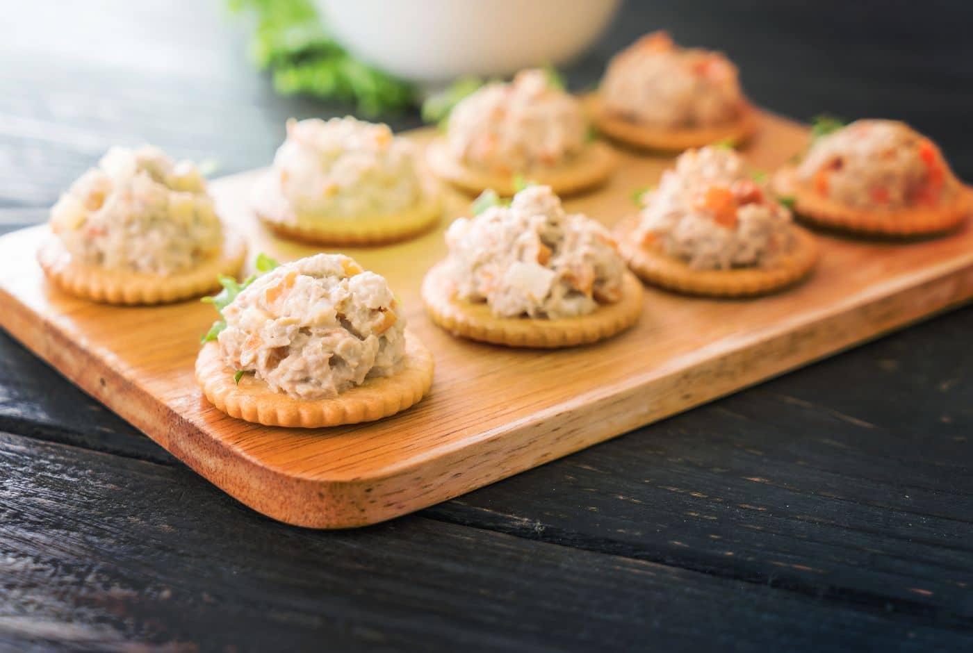 Εάν δεν θέλετε να τρώτε γαλακτοκομικά σε κάθε σνακ, μια κονσέρβα τόνου (σε νερό) είναι μια άλλη μεγάλη πηγή άπαχης πρωτεΐνης με υγιή ωμέγα-3 λιπαρά οξέα. Για περίπου 200 θερμίδες, μπορείτε να απολαύσετε 100 γραμμάρια τόνου και 6 κράκερ ολικής αλέσεως και θα έχετε πάρει 3 γραμμάρια φυτικών ινών και 20 γραμμάρια πρωτεΐνης.