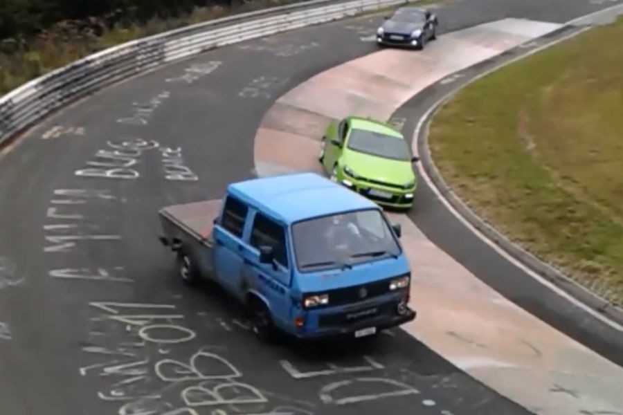 Γνωρίζουμε ότι το Nurburgring είναι ανοιχτό για όλους. Καθείς μπορεί να πάρει το όχημά του, να πληρώσει εισιτήριο και να δοκιμάσει την τύχη του στην «Πράσινη Κόλαση». Ένα γεγονός που χαρίζει ξεχωριστές στιγμές, όπως -ας πούμε- ένα VW Transporter να προσπερνάει πλαγιολισθαίνοντας στην Κarussel ένα Scirocco!