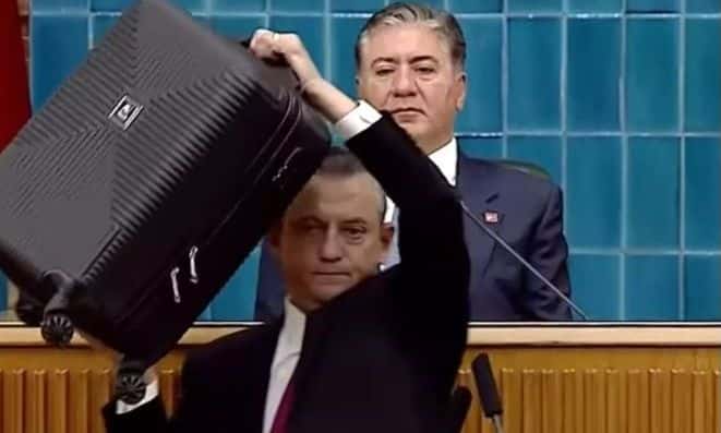 Παράσταση με μια βαλίτσα γεμάτη χρήματα «ανέβασε» στη Βουλή της Τουρκίας ο ηγέτης του αντιπολιτευόμενου Ρεπουμπλικανικού Λαϊκού Κόμματος Οζγκιούρ Οζέλ, στη συζήτηση που έγινε για την ακρίβεια στη χώρα.