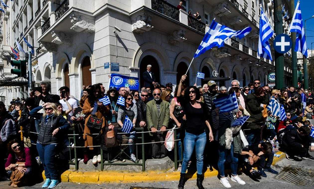Μπορεί η μπάντα του Πολεμικού Ναυτικού να παιάνισε το «Μακεδονία Ξακουστή» λίγο πριν ξεκινήσει η μεγαλειώδης στρατιωτική παρέλαση, ωστόσο οι πολίτες της πρωτεύουσας δεν στάματησαν στιγμή να τραγουδούν το εμβατήριο.