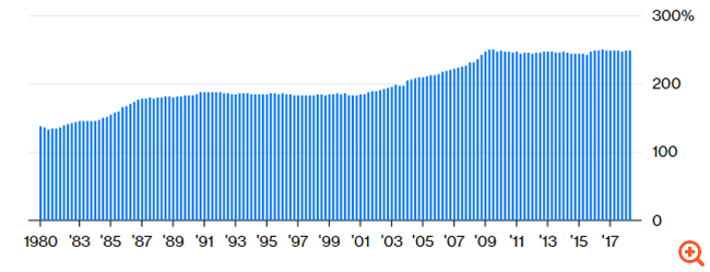 Το συνολικό μη χρηματοπιστωτικό χρέος των ΗΠΑ ως ποσοστό του ΑΕΠ