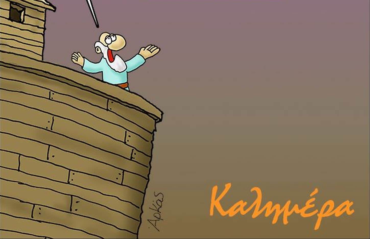 Ο γνωστός σκιτσογράφος Αρκάς μας μεταφέρει ξανά πάλι στην εποχή του Νώε που τόσο αγαπά. Με το ιδιαίτερο χιούμορ που τον διακατέχει βλέπουμε τον Νώε να ρωτά τον Θεό γιατί πρέπει να πραγματοποιήσει τον κατακλυσμό.