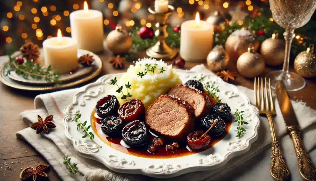 Το ψαρονέφρι με δαμάσκηνα είναι ένα εντυπωσιακό και γευστικό πιάτο που μπορεί να κλέψει την παράσταση στο Χριστουγεννιάτικο τραπέζι σας. Η γλυκύτητα των δαμάσκηνων συνδυάζεται υπέροχα με την τρυφερή υφή του χοιρινού κρέατος, δημιουργώντας μια ισορροπημένη και ευχάριστη γεύση.