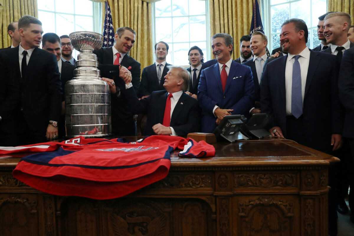 The Stanley Cup and the Caps with President Trump in the Oval Office.