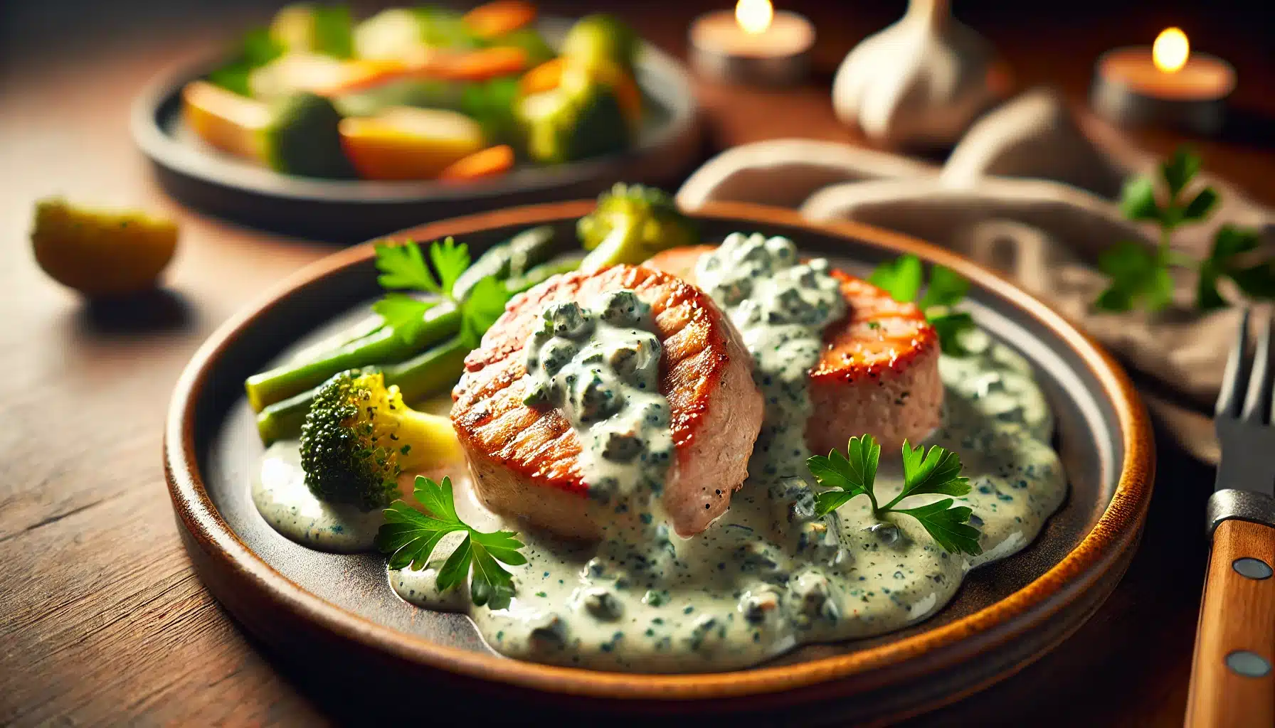 Συνταγή για χοιρινές μπριζόλες με σος ροκφόρ
