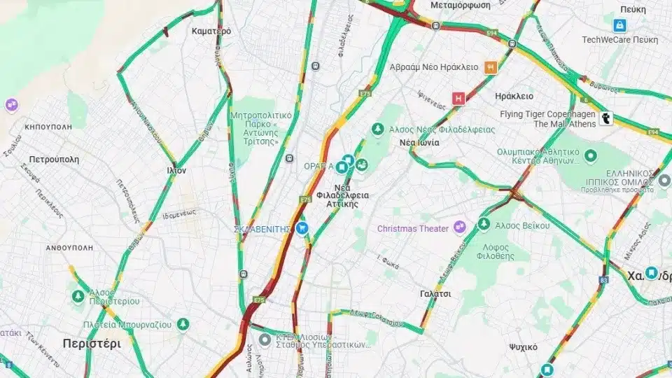 Σοβαρή κυκλοφοριακή συμφόρηση παρατηρείται και στα δύο ρεύματα της Λεωφόρου Κηφισού, από τη Νέα Ιωνία προς το Αιγάλεω και κυρίως στον κόμβο της Μεταμόρφωσης. Οι οδηγοί αντιμετωπίζουν μεγάλες καθυστερήσεις.