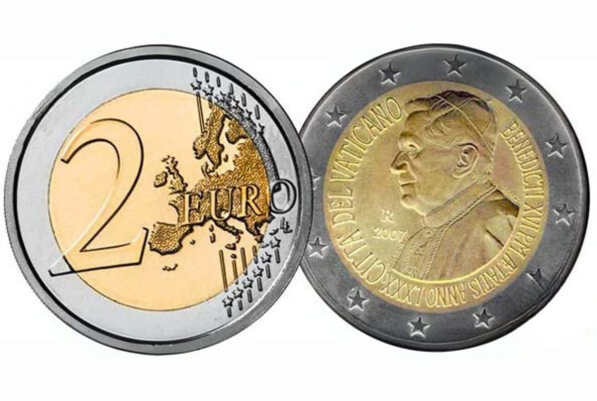 Τέταρτη περίπτωση το κέρμα των 2 Ευρώ, Βατικανό 2007 , για τα 80ά γενέθλια του Πάπα Βενέδικτου ΙΣΤ’.