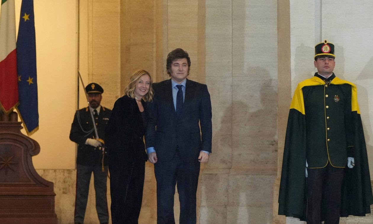 H Ιταλίδα πρωθυπουργός Τζόρτζια Μελόνι συναντήθηκε, χθες το βράδυ στη Ρώμη, με τον πρόεδρο της Αργεντινής Χαβιέ Μιλέι. Σύμφωνα με ανακοίνωση της ιταλικής κυβέρνησης, κατά τη συνομιλία τους υπογραμμίσθηκε και πάλι η βούληση να ενισχυθούν οι διμερείς σχέσεις, με στόχο να υπογραφεί, τους επόμενους μήνες, σχέδιο δράσης που να καλύπτει την επόμενη πενταετία.