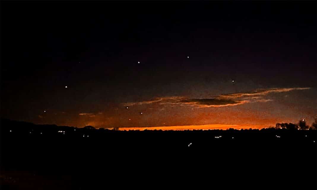 Αυτή η φωτογραφία που παραχωρήθηκε από τον Brian Glenn δείχνει κάτι που φαίνεται να είναι πολλαπλά drones που πετούν πάνω από το Bernardsville, N.J., την Πέμπτη 5 Δεκεμβρίου 2024. | Associated Press
