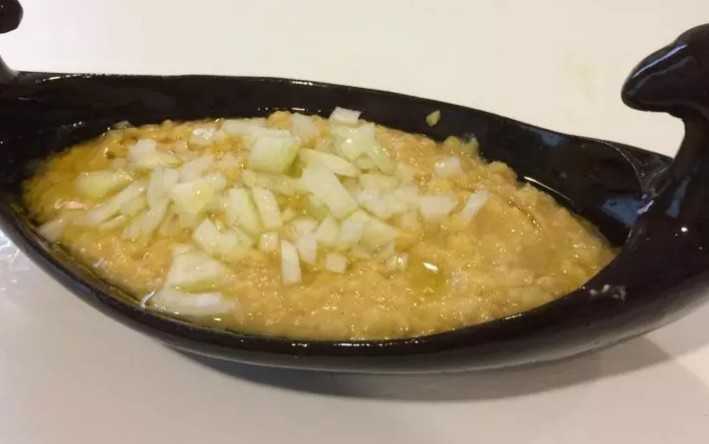 Μόλις πάρει βράση, περίπου στα 20-30 λεπτά δηλαδή, με ένα τρυπητό την ξαφρίζουμε και προσθέτουμε το ελαιόλαδο, το αλάτι και τα κρεμμύδια.