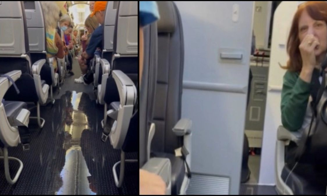 Βίντεο που κάνει τον γύρο του διαδικτύου δείχνουν τον διάδρομο του αεροπλάνου να γεμίζει με νερό και τους επιβάτες να σπεύδουν να μαζέψουν όσο πιο γρήγορα μπορούν τις αποσκευές τους και να κατευθύνονται προς το μπροστινό μέρος του αεροσκάφους.