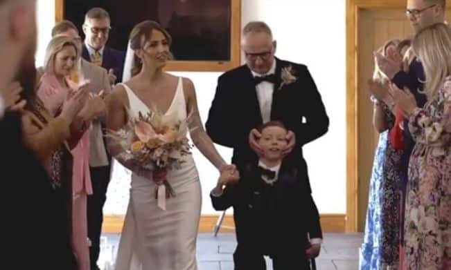Ένας 10χρονος έκανε το αδύνατο δυνατό και ενώ έχει μια σπάνια ασθένεια κατάφερε να συνοδεύσει τη μαμά του στα σκαλιά της εκκλησίας για τον γάμο της με τον μπαμπά του.