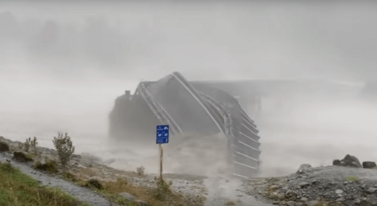 Από τα ορμητικά νερά η γέφυρα του ποταμού Waiho που ένωνε το νότιο νησί της χώρας κοντά στο Franz Josef κατέρρευσε.