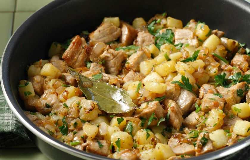Τηγανιά με χοιρινό, πατάτες και θυμάρι