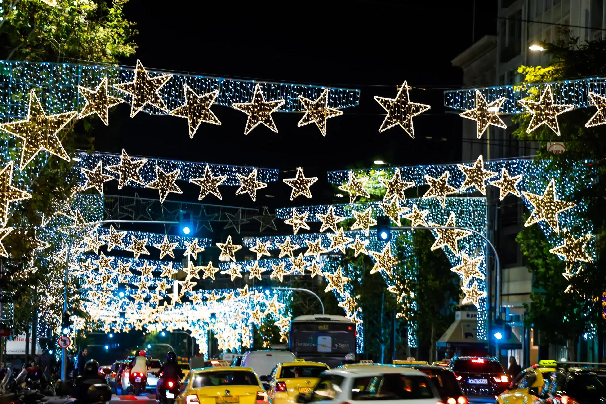 2. Τα αστεράκια της Βασιλίσσης Σοφίας. Ο μόνος χριστουγεννιάτικος στολισμός που δεν φαίνεται κιτς και άσχημος ούτε στους ανθρώπους που μισούν τους χριστουγεννιάτικους στολισμούς των δήμων (θα ‘χουν τους λόγους τους, δε λέμε) τα μονόχρωμα, χρυσαφένια αστεράκια στο κομμάτι της Βασιλίσσης Σοφίας που ενώνει τη Βουλή με το Χίλτον έχουν κάτι από μαγεία.