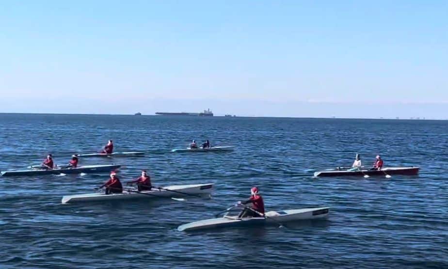 Στα νερά του Θερμαϊκού Κόλπου βρέθηκαν σήμερα δεκάδες Άι Βασίληδες με κουπιά και κανό αλλά και με σανίδες sup, μεταφέροντας το γιορτινό κλίμα στην πόλη, λίγες μέρες πριν από τις γιορτές των Χριστουγέννων και της Πρωτοχρονιάς.