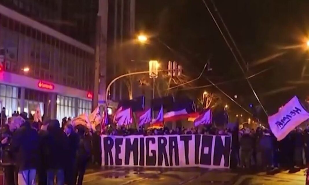 Περίπου 700 διαδηλωτές συγκεντρώθηκαν χθες το βράδυ στο Μαγδεμβούργο, κρατώντας πανό που έγραφαν «Remigration Now» (Μετανάστευση ξανά τώρα), όπως αναφέρει η Daily Mail.