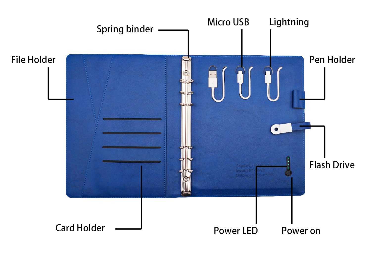 Κομψό και εύχρηστο σημειωματάριο – notebook – φορτιστής Α5! Ένα πραγματικό εργαλείο για όλους τους εργαζόμενους, τους φοιτητές και τους μαθητές! Κρατείστε τις σημειώσεις σας με στιλ αλλά ταυτόχρονα χρησιμοποιήστε το laptop ή το κινητό σας, χρησιμοποιώντας τo notebook ως powerbank!