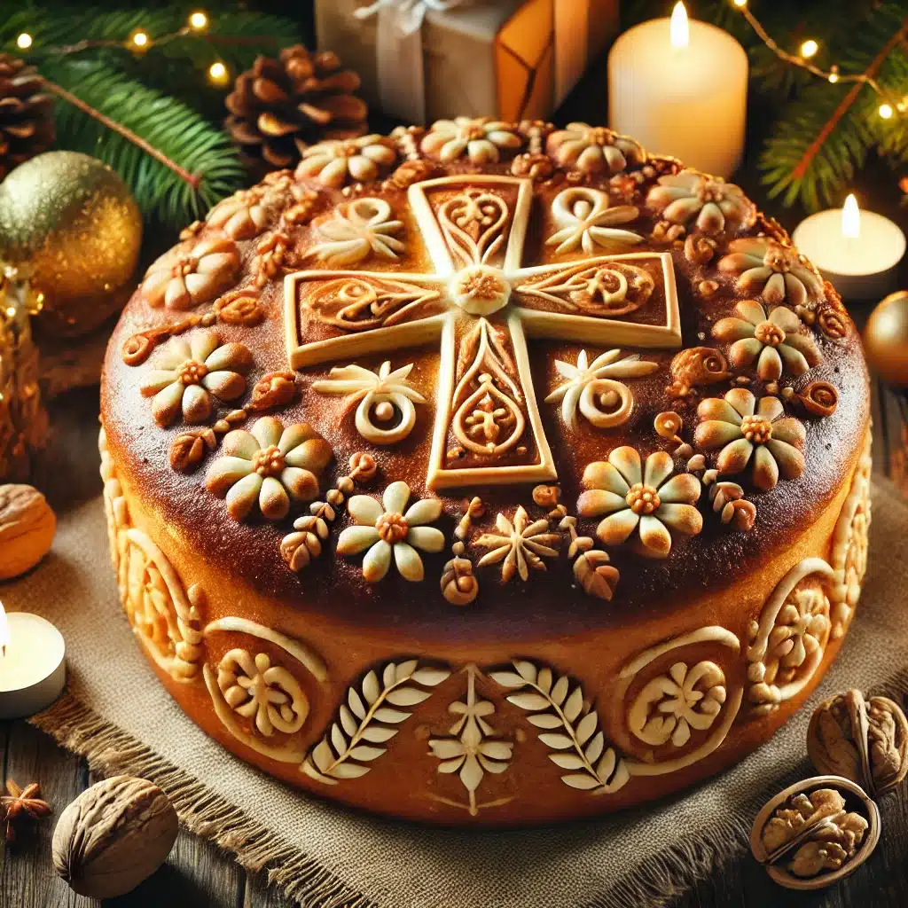 Ο σταυρός στην επιφάνεια του Χριστόψωμου συμβολίζει την ευλογία του σπιτιού, ενώ το σχήμα του ψωμιού τιμά την αφθονία και την ενότητα της οικογένειας.