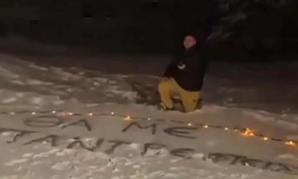 Της έκανε πρόταση γάμου, γράφοντας πάνω στο χιόνι την κρίσιμη ερώτηση: «Θα με παντρευτείς;», με τη Γιώτα να ανταποκρίνεται θετικά.