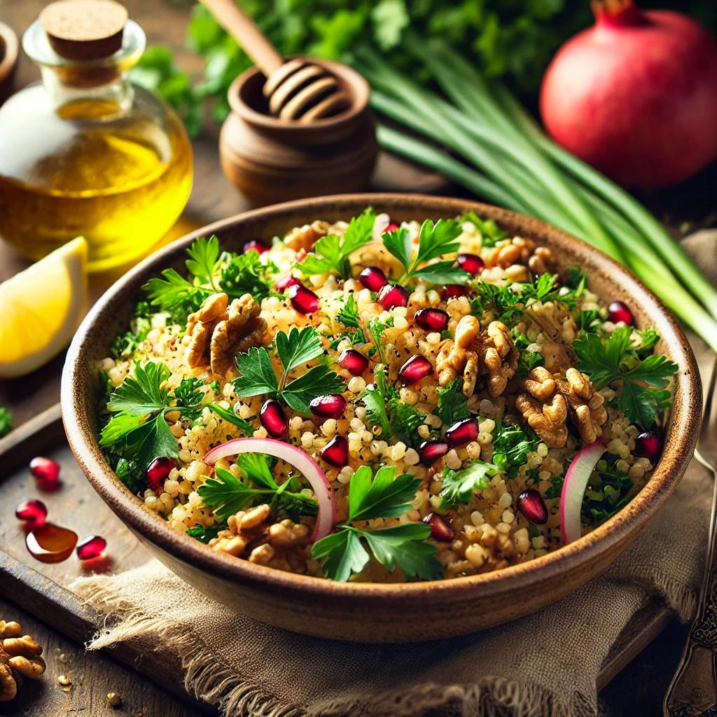Σαλάτα με καρύδια, ρόδι και πλιγούρι: Αυτή η σαλάτα είναι ένας γευστικός συνδυασμός υγιεινών υλικών που θα ικανοποιήσει και τους πιο απαιτητικούς ουρανίσκους. Το πλιγούρι δίνει μια πλούσια υφή, τα καρύδια προσφέρουν μια τραγανή γεύση ενώ το ρόδι χαρίζει μια ευχάριστη γλυκόξινη νότα. Είναι η ιδανική επιλογή για ένα ελαφρύ γεύμα ή συνοδευτικό πιάτο.