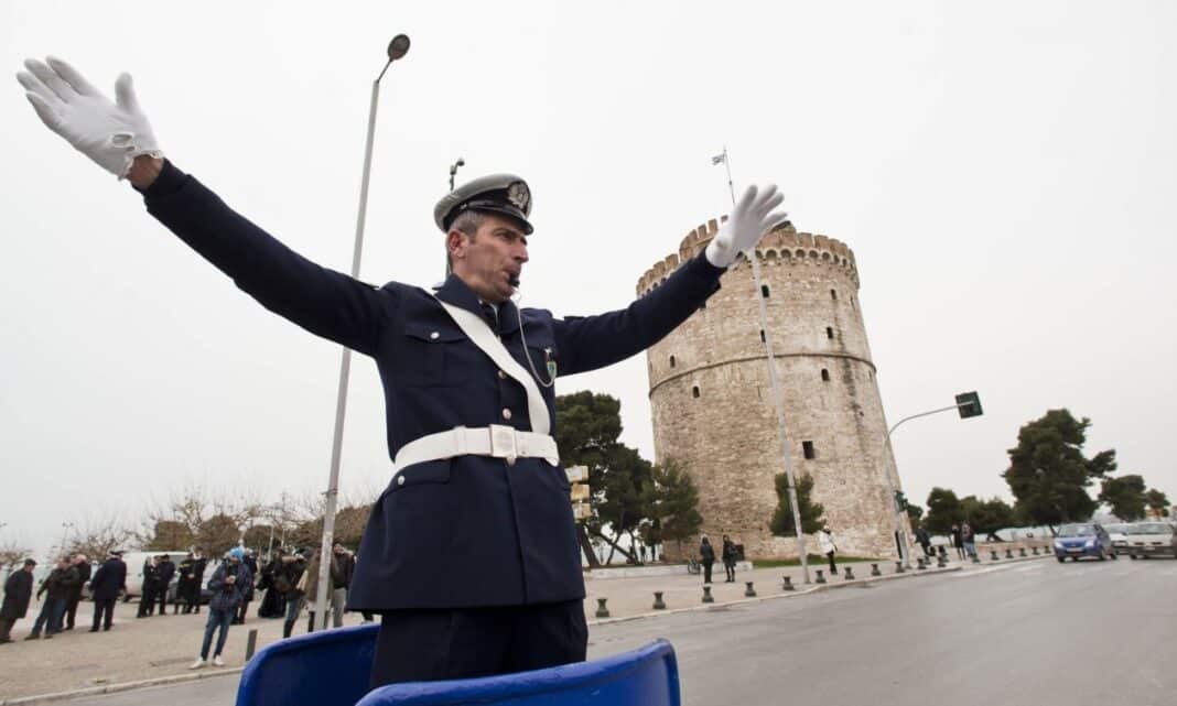 Οι διερχόμενοι οδηγοί χαιρετούσαν τον τροχονόμο μέσα από τα οχήματά τους.