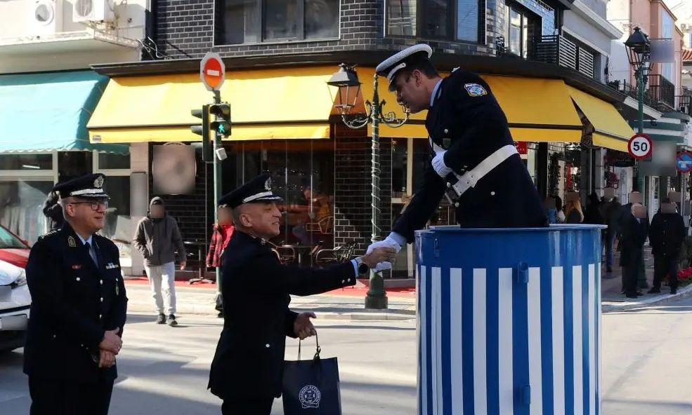 Χθες, 31 Δεκεμβρίου 2024, Παραμονή Πρωτοχρονιάς, στο κέντρο της πόλης του Βόλου προσφέρθηκαν εθιμοτυπικά δώρα σε τροχονόμο.