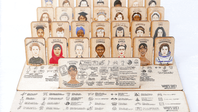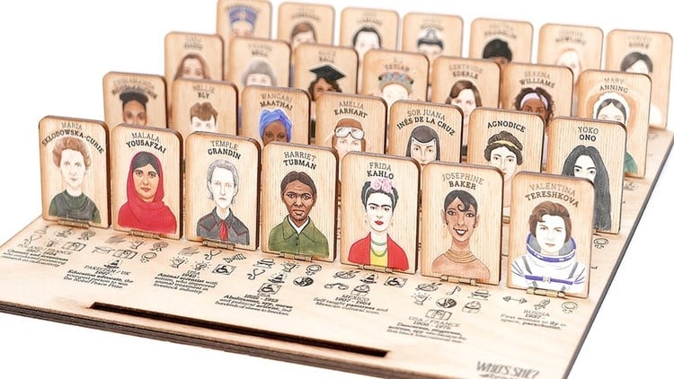 Ονομάζεται «Who’s She?», χρηματοδοτήθηκε από το κοινό, μέσω της crowdfunding πλατφόρμας Kickstarter, και κυκλοφορεί από την εταιρεία Playeress. Είναι ενδιαφέρον και ως ιδέα αλλά και ως αισθητική, αφού φτιάχτηκε από υψηλής ποιότητας ξύλο σημύδας, ενώ τα 28 γυναικεία πορτρέτα φιλοτεχνήθηκαν στο χέρι σε ακουαρέλα από τη δημιουργό Daria Gołąb.