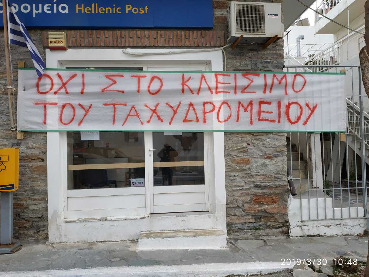 Τις τελευταίες ημέρες στο Μαρμάρι της Εύβοιας το υποκατάστημα των ΕΛΤΑ έχει καταληφθεί από τους κατοίκους προκειμένου να εμποδιστεί η κατάργηση του.