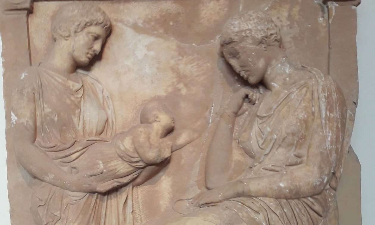Αυτή η επιτύμβια στήλη, που αποτελεί έργο εξαιρετικής τέχνης, βρέθηκε στο Ψυχικό και δείχνει την μετάβαση της ψυχής, καθώς και την αδυναμία μας να την κατανοήσουμε. Και αυτό συνέβη, πού; Στο Ψυχικό. Επίσης, δεν είναι τυχαίο που το βρέφος και η νεκρή μητέρα του χωρίζονται από ένα κενό μόλις τριών χιλιοστών. Το “τρία” είναι ιερός αριθμός για την αρχαία φιλοσοφία, όπως και τα πολλαπλάσιά του.