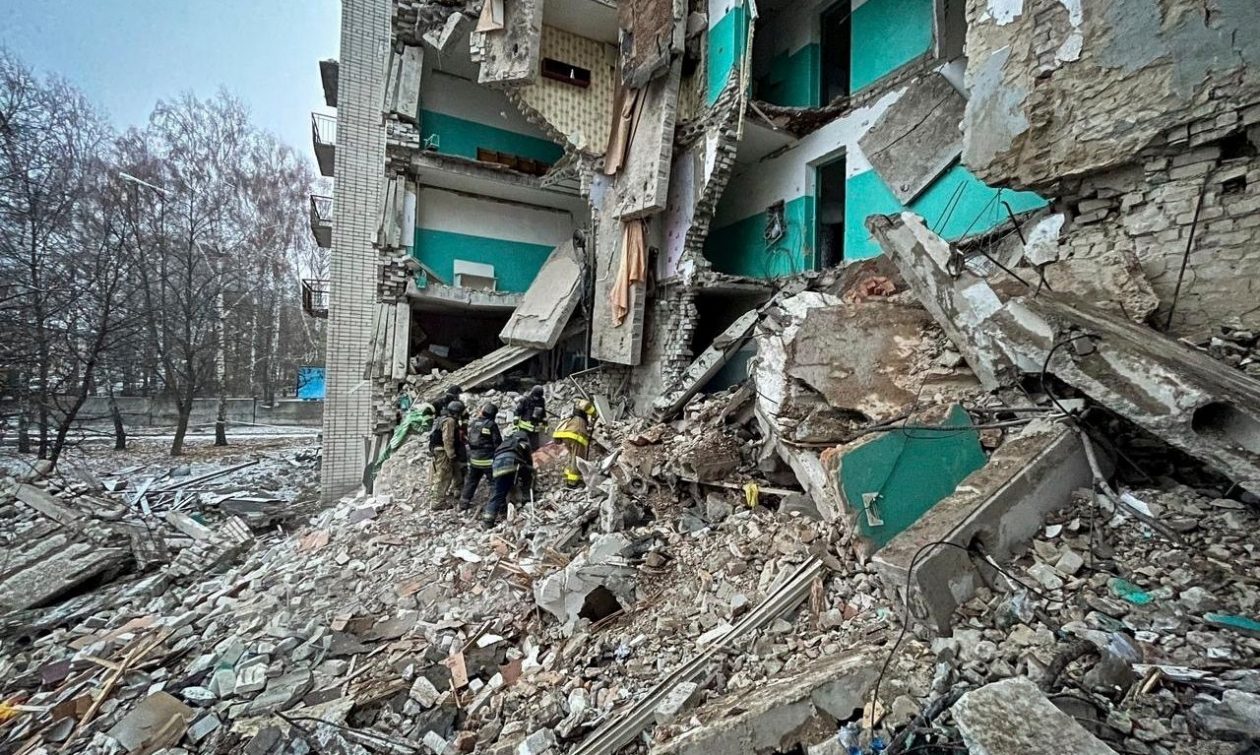 Σε βίντεο που δημοσιοποίησε ο ουκρανός πρόεδρος Βολοντίμιρ Ζελένσκι διακρίνεται ένα ισοπεδωμένο κτίριο στο χωριό Σβέσα και διασώστες να απομακρύνουν τραυματίες πάνω σε φορεία. «Ένα μεγάλο τμήμα της πολυκατοικίας, από το ισόγειο μέχρι τον πέμπτο όροφο, καταστράφηκε», ανέφερε ο Ζελένσκι σε βιντεοσκοπημένο μήνυμά του. «Ζημιές υπέστησαν και γειτονικά κτίρια», συμπλήρωσε.