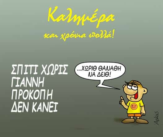 Ο αγαπημένος σκιτσογράφος Αρκάς με την καυστική του πένα και τον χαρακτηριστικό του χιούμορ, αφιερώνει τη σημερινή «καλημέρα» σε όλους τους Γιάννηδες που γιορτάζουν, εμπλουτίζοντας το κλασικό ρητό «Σπίτι χωρίς Γιάννη, προκοπή δεν κάνει» με την πινελιά του μικρού Θανασάκη. Ο Θανασάκης, όπως πάντα, με τον ιδιαίτερο τρόπο του, προσθέτει μια δόση ζήλιας και αυτοσαρκασμού, κάνοντάς μας να γελάσουμε με την παρατήρησή του: «Χωρίθ Θανάθη να δειθ!».