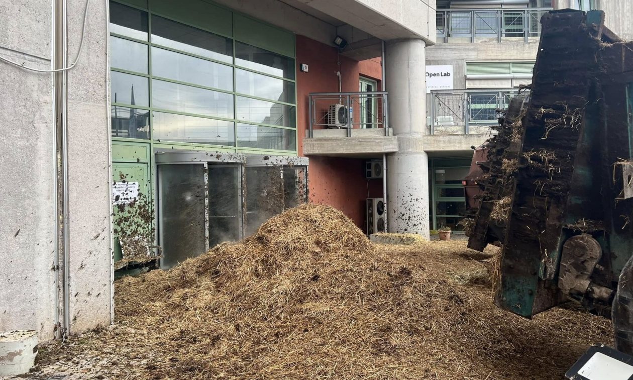 Με κοπριά και άχυρα στην είσοδο του κτιρίου της Περιφέρειας Στερεάς Ελλάδας, αντιδρούν οι αγρότες της Βοιωτίας στην «αδράνεια των υπευθύνων και στον εμπαιγμό που αισθάνονται» από όλους όσοι θα έπρεπε να ενεργούν για τα συμφέροντά τους.