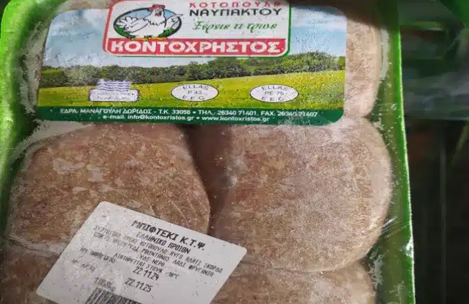 Ο Ενιαίος Φορέας Ελέγχου Τροφίμων (ΕΦΕΤ) ανακοίνωσε την άμεση ανάκληση κατεψυγμένου προϊόντος μπιφτεκιού κοτόπουλου, καθώς εντοπίστηκε η παρουσία του παθογόνου μικροοργανισμού Salmonella spp. Η ανάκληση αφορά συγκεκριμένη παρτίδα με ημερομηνία παραγωγής 22 Νοεμβρίου 2024 και ημερομηνία ανάλωσης έως 22 Νοεμβρίου 2025, που παρασκευάζεται από την επιχείρηση «Κοτόπουλα Ναυπάκτου – Κοντοχρήστος».