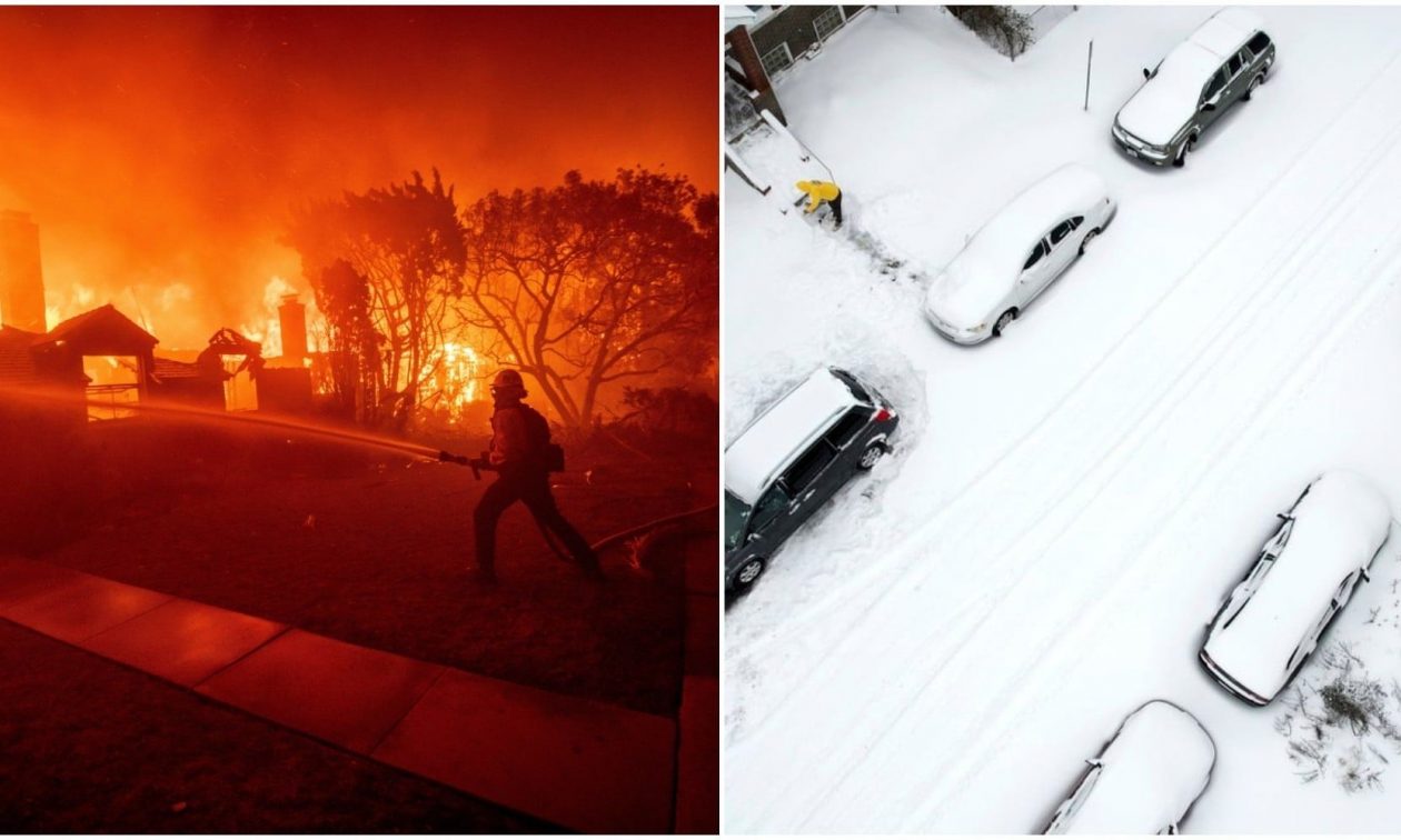 Το Λος Άντζελες κήρυξε κατάσταση έκτακτης ανάγκης καθώς μια τεράστια πυρκαγιά εξαπλώθηκε σε 3.000 στρέμματα μέσα σε λίγες ώρες. Πάνω από 30.000 άνθρωποι βρίσκονται υπό διαταγή εκκένωσης και 13.000 κτήρια απειλούνται. Στις ανατολικές ΗΠΑ τουλάχιστον πέντε άνθρωποι έχασαν τη ζωή τους σε συνθήκες ακραίου ψύχους