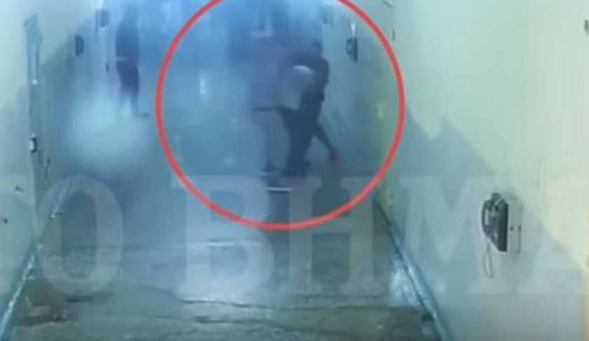 Στο σοκαριστικά πλάνα διακρίνεται το θύμα να περπατάει στο διάδρομο και να δέχεται επίθεση από δύο συγκρατούμενούς του.