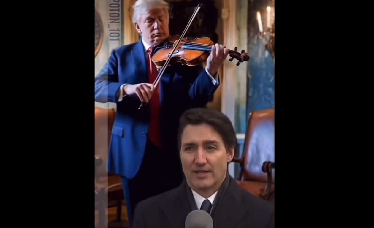 σε ανάρτησή που διαμοιράστηκε ο Μασκ απεικονίζεται ο Τζάστιν Τριντό να δηλώνει την παραιτησή του, ενώ από πίσω ο εκλεγμένος πρόεδρος των ΗΠΑ Ντόναλντ Τραμπ παίζει… βιολί