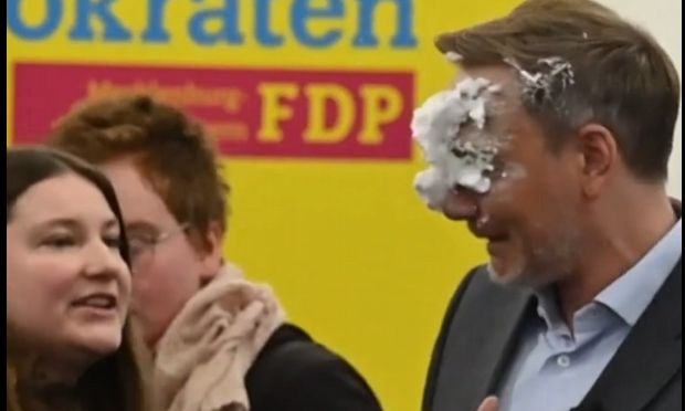 Απρόοπτο σημειώθηκε σε προεκλογική εκδήλωση του κόμματος FDP στο κρατίδιο του Μεκλεμβούργου-Δυτικής Πομερανίας, όταν ο ηγέτης του κόμματος, Κρίστιαν Λίντνερ, δέχθηκε μια τούρτα στο πρόσωπο.
