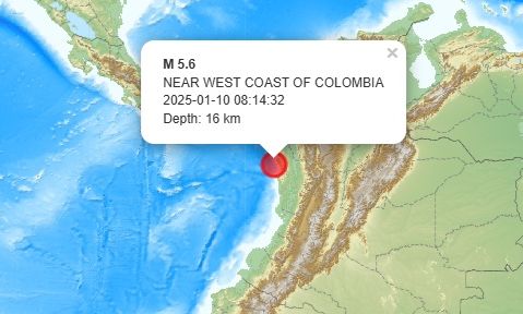 Σεισμός μεγέθους 5,9 Ρίχτερ δίπλα στις δυτικές ακτές της Κολομβίας