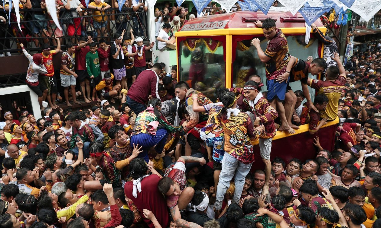 Οι Φιλιππινέζοι μετέτρεψαν τους δρόμους της Μανίλας σε μια «θάλασσα» από καστανοκόκκινο και χρυσό χρώμα και κατέκλυσαν τον «Μαύρο Ναζωραίο», μια εικόνα του Ιησού Χριστού σε φυσικό μέγεθος που φέρει έναν σταυρό, καθώς οι πιστοί έσπρωχναν για μια ευκαιρία να τραβήξουν το χοντρό σχοινί που τραβούσε την άμαξα σε όλη την πρωτεύουσα των Φιλιππίνων, όπως αναφέρει το Associated Press.
