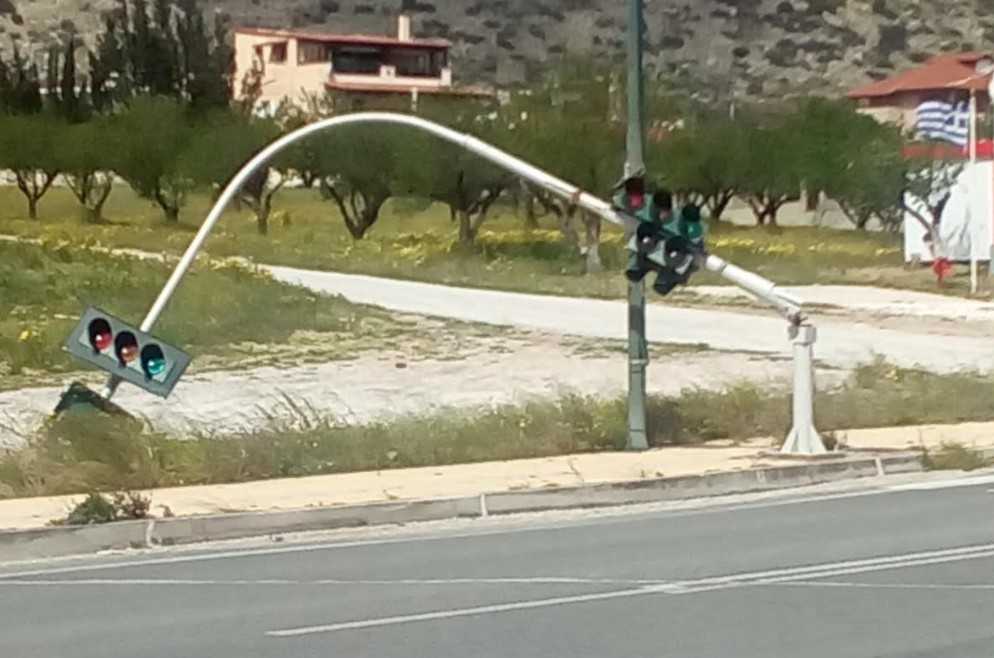 Άραγε τι θα γινόταν αν έπεφτε πάνω σε κάποιο αμάξι το φανάρι που έσπασε από τον αέρα;